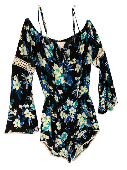Small Sun & Shadow Junior Women's Sheer Boho Romper Long Sleeve Off Shoulder