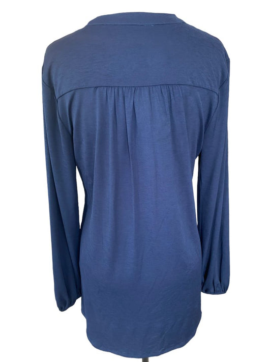 Small NWT Wonderly Blue Pleated Tunic Top Long Sleeve Henley