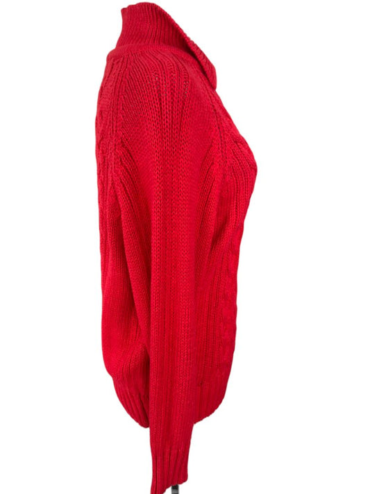Large Illustrations Red Cable Knit Collared Vintage Sweater