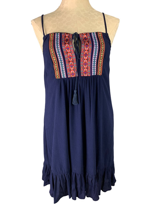 Small Way-In Clothing Company Women's Navy Blue Boho Sundress Spaghetti Strap Pullover