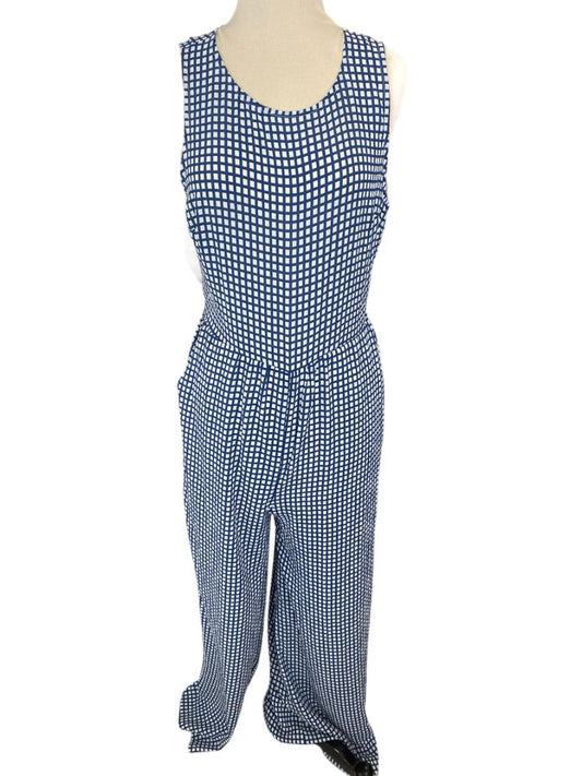 NWT LUSH Check Jumpsuit Medium Blue and White Wide Leg Crepe Sleeveless