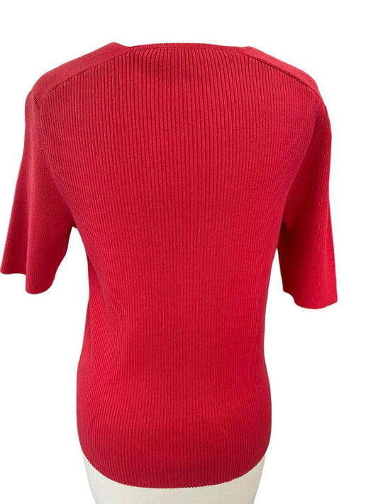 Medium Tory Burch Red Short Sleeve Ribbed Sweater