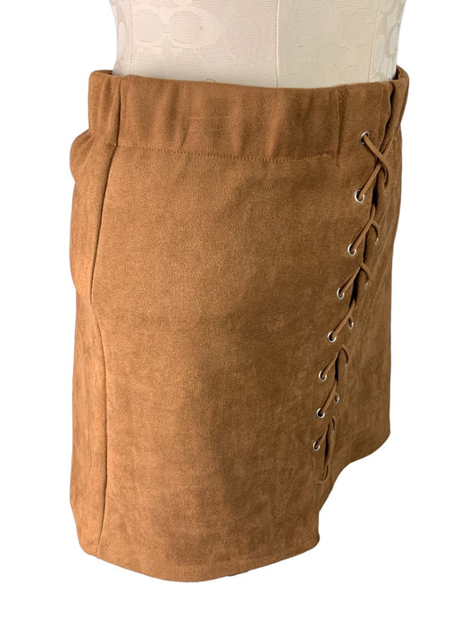 Large Suzette Collection Junior Women's Brown New Microfiber Faux Suede Pull On Mini Skirt