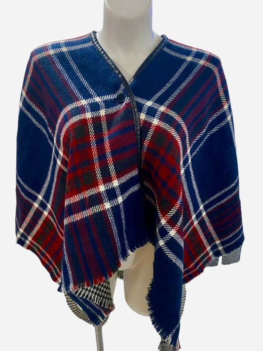 Reversible Shawl Herringbone One Side And Plaid On The Other Button Closure