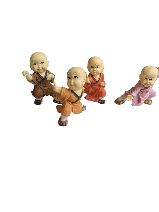Vintage Set of 4 Baby Monk Resin Figurines Happiness 2.5"