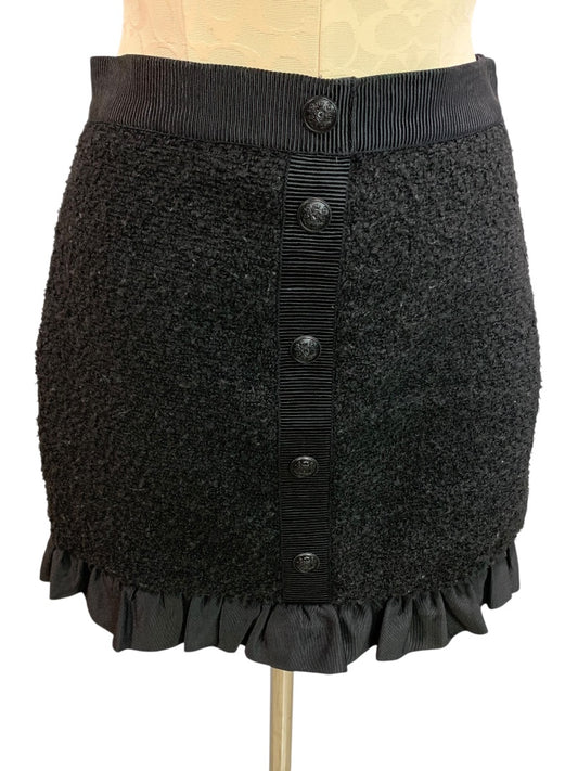 Size 2P Loft Petites Black Tweed Ruffle Hem Skirt Side Zip