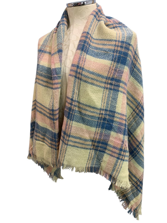 Soft Pastel Plaid Shawl Fringed 56" Square Wrap