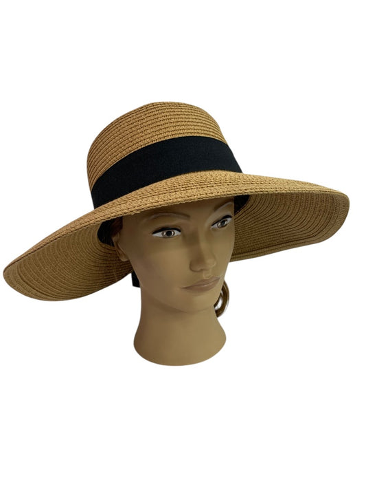 One Size Womens Straw Sunhat Adjustable Band Black Ribbon