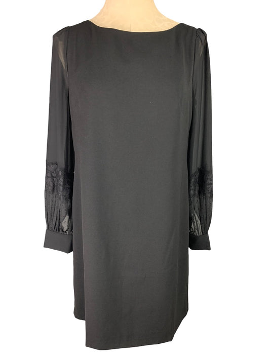 6 Ann Taylor Black Shift Dress Sheer Sleeve Back Zip Knee Length