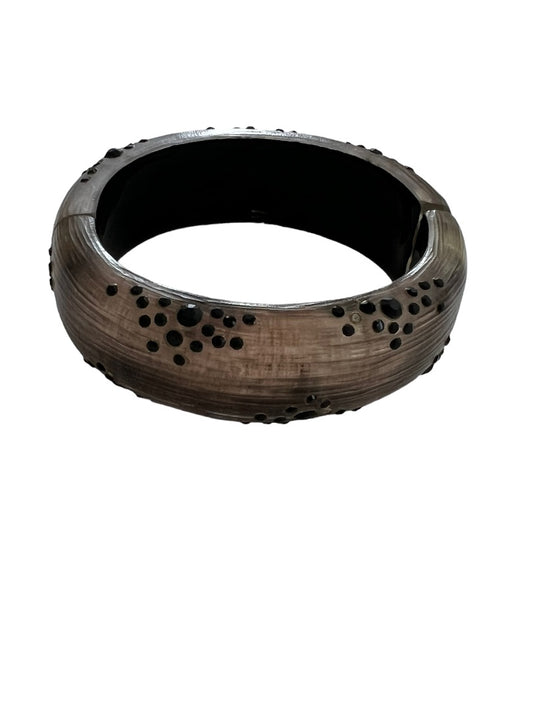 Alexis Bitter Rose Gold Lucite Hinged Bangle Bracelet Black Rhinestones 3" x 2.75"