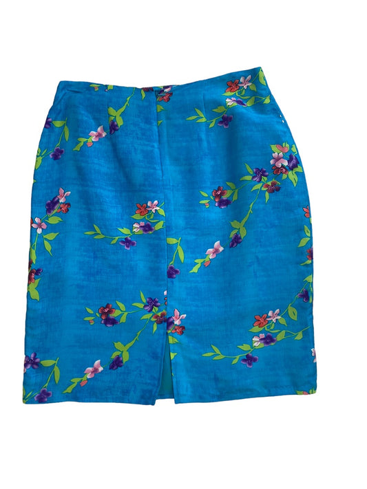 8 Emily Spencer Turquoise 100% Silk Floral Skirt