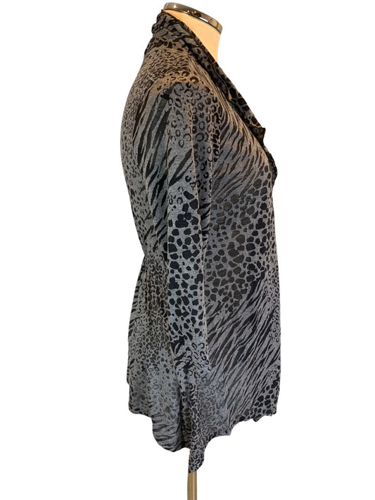 Small Fashion Bug Vintage Y2K Women's Gray Black Animal Print Lightweight Open Cardigan