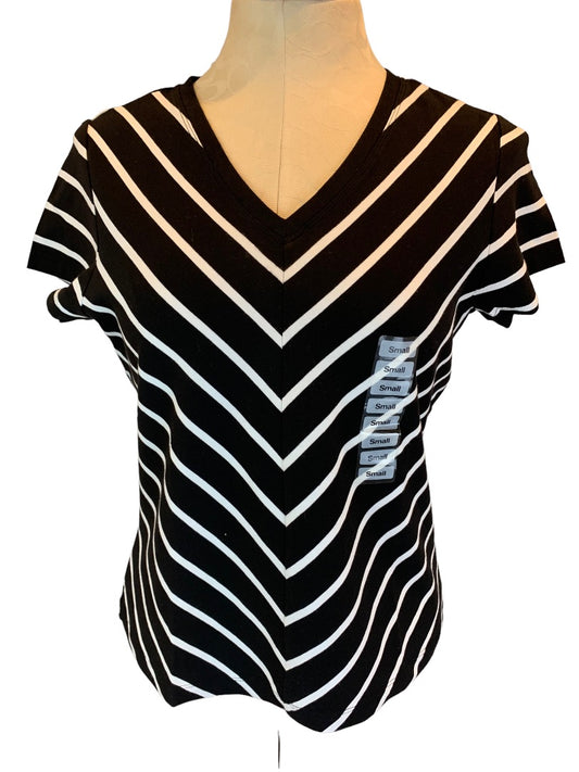 Small STO Susquehanna Trail Outfitters Black White Stripe V-Neck Tshirt New