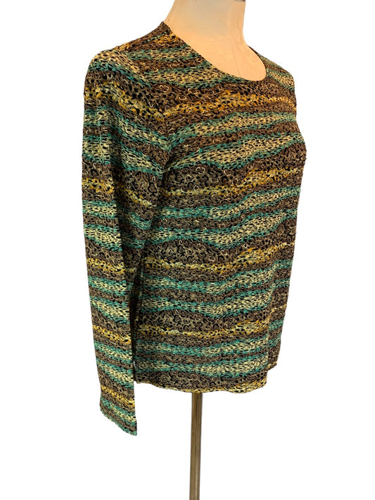 Small Laura Ashley Textured Gold Brown Women's Pullover Top Long Sleeve Stretch