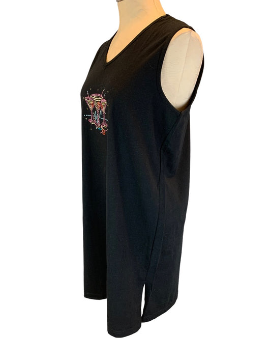 Small CZ Coverups Black Jersey Knit Embellished Cocktail Cover Up Sleeveless New
