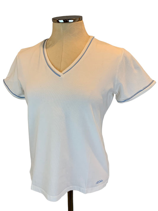 Medium Izod Stretch Vintage Y2K Women's White Golf Tshirt Blue Trim
