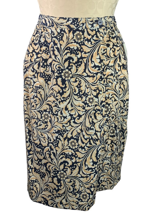 6 Worthington Yellow Navy Blue Skirt Knee Length Skirt New