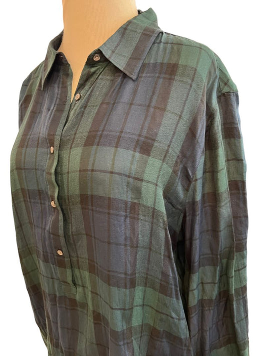 NWT LOFT XL Blue Green Plaid Button Down Shirt Blouse MSRP 49.99