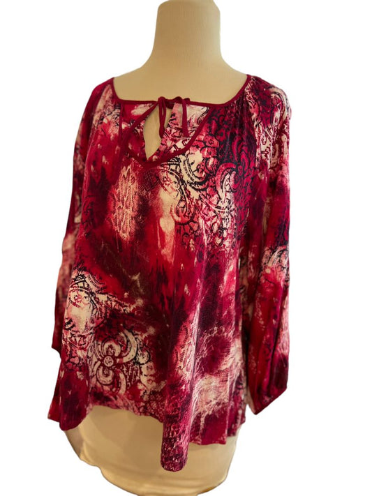 Large Ariat Pink Tie Neck 3/4 Sleeve Blouse