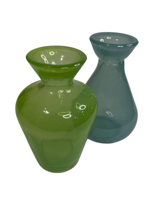 Pair of Glass 4.5" Bud Vases Blue Green