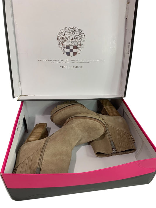Size 6M Vince Camuto Womens Heeled Booties Truffle Taupe Suede Ernessa