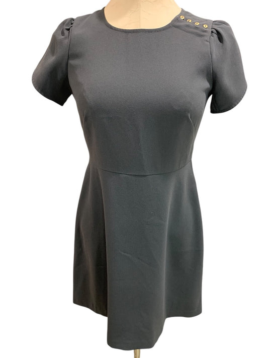 Size 2P Loft Petites Charcoal Gray A-Line Dress Button Embellished Shoulder