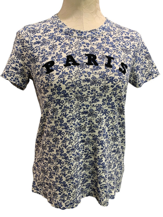 XS Loft Womens Tshirt Floral Embroidered Paris Blue