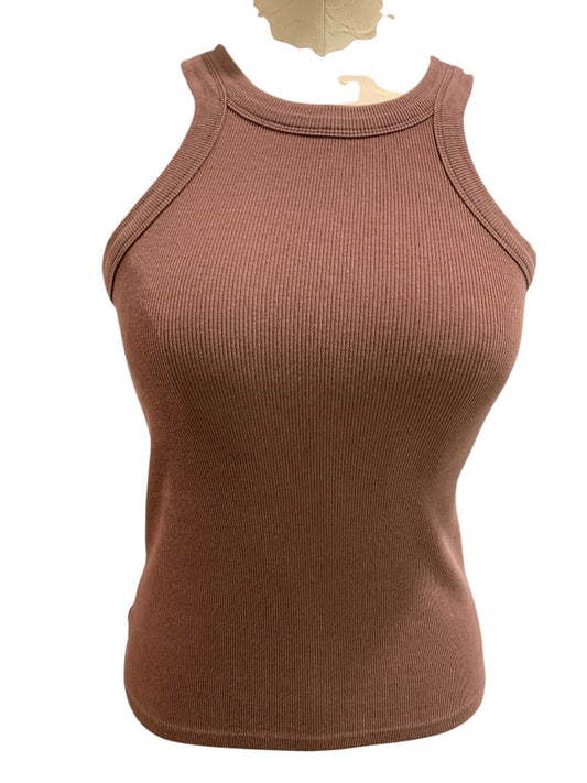 Small Loft Womens Ribbed Brown Tank Top Shirt