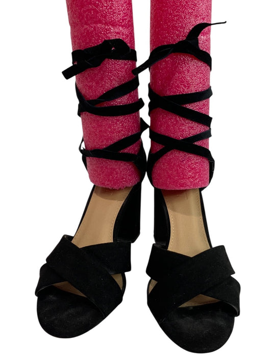 Size 5.5 Loft Womens Lace Up Black Faux Suede 3.5" Heels Shoes