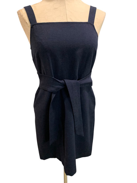 Size 4P Loft Navy Blue Belted Dress Sleeveless Back Zip Linen Blend