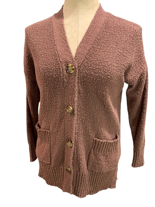 XS Loft Womens Dark Mauve V-Neck Cardigan Tunic Sweater Knit with Pockets