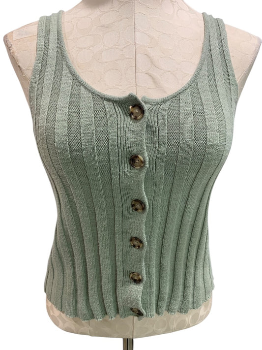 XS Loft Womens Sleeveless Ribbed Sweater Button Front Sage Green