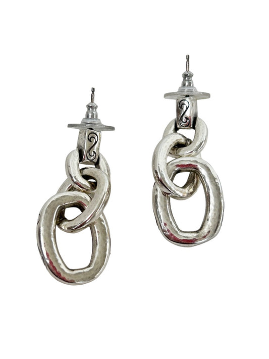 Silvertone Linked Chain Post Pierced Earrings Etched 1 5/8" Drop Dangle