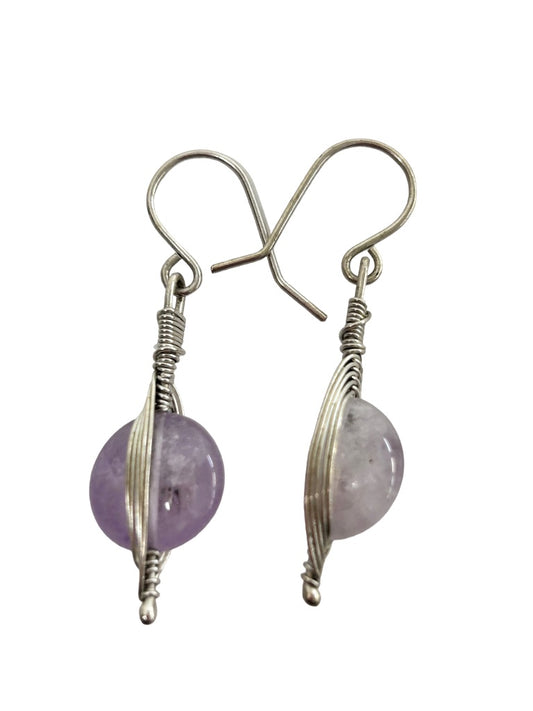 Silvertone Lavender Stone Wire Hook Earrings Pierced 1.75" Drop Dangle