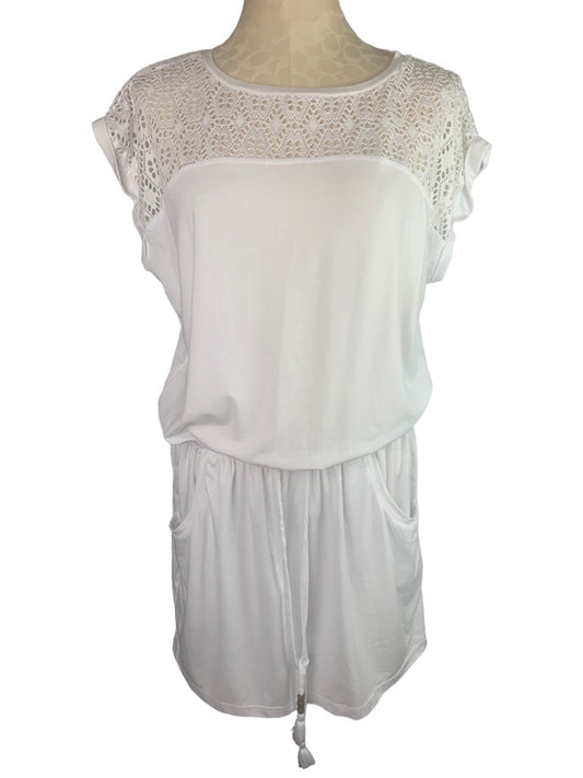 Medium Talbots White Lace Yoke Jersey Knit Pocket Dress