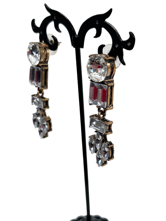 Dangle Drop Earrings Goldtone Clear Acrylic Gem Post Pierced 2 1/8" Drop Dangle