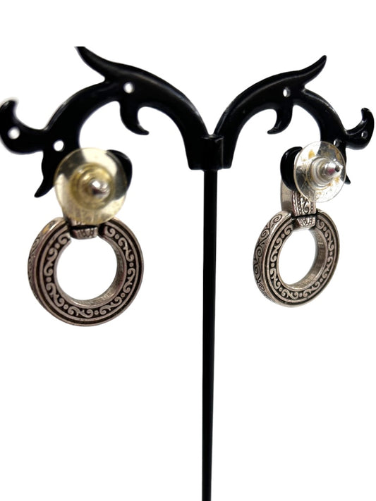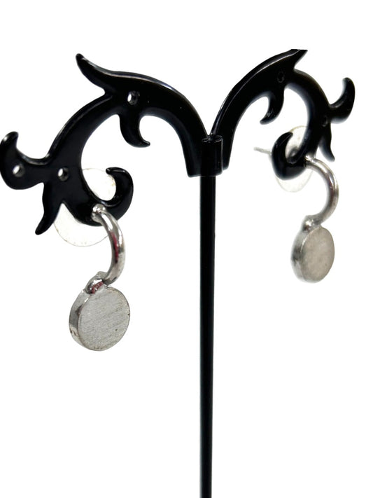 Silvertone Post Pierced Earrings Circle Design 5/8" Drop