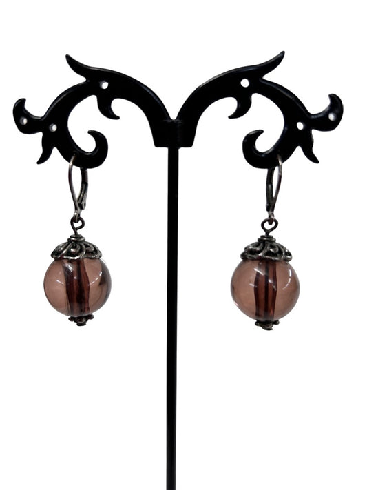 Silvertone and Acrylic Brown Bead 1.5" Drop Dangle Earrings Leverback Pierced