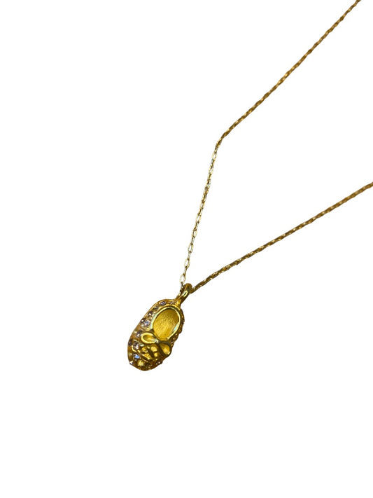 Goldtone Baby Bootie Pendant Necklace Embellished 15" Chain Delicate