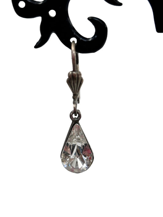 Teardrop Shape Clear Rhinestone Earrings Silvertone Earrings Leverback 1.25" Drop Dangle