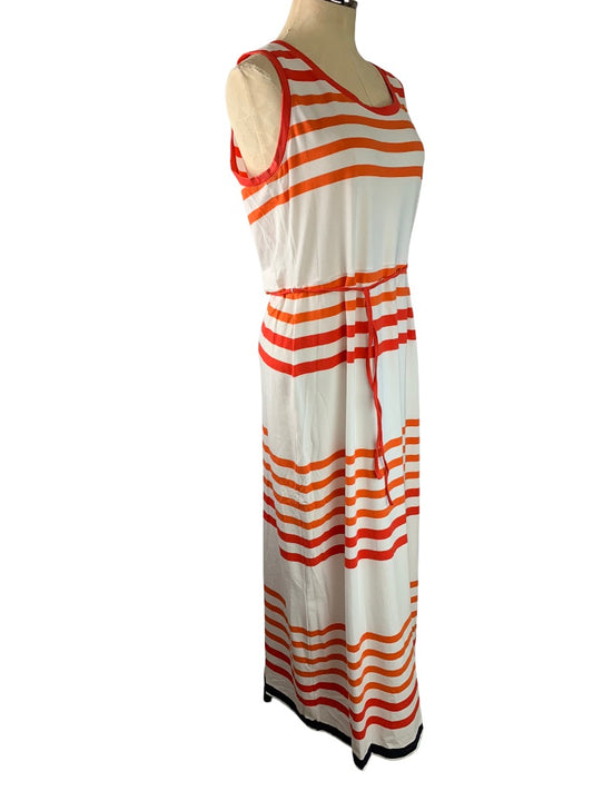 Large Talbots Orange White Soft Knit Striped Sleeveless Maxidress Belted