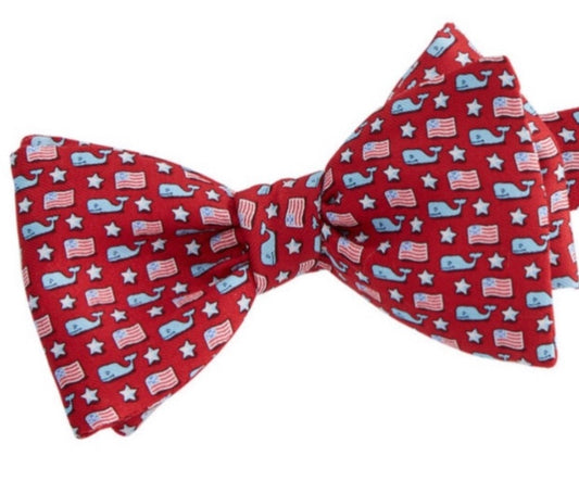Vineyard Vines Red Whale Flag Bow Tie 13 3/4 to 16