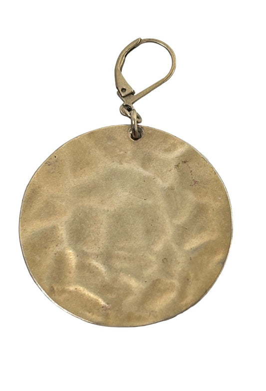 Signed KC Hammered Matte Goldtone Round Earrings Leverback Pierced Earrings