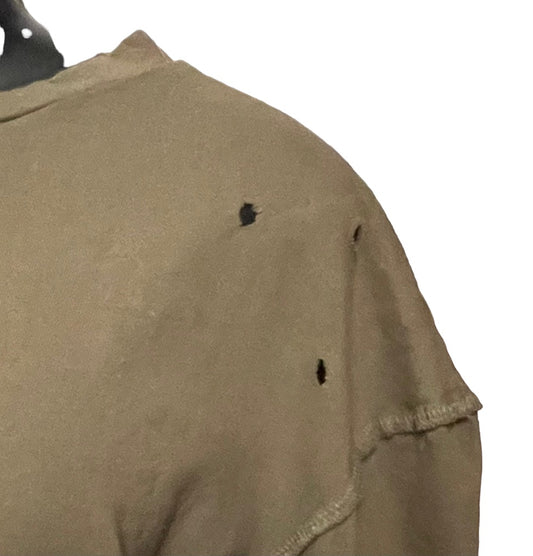 Medium Glam Los Angeles Long Sleeve Distressed Womens Top Olive Green High Low Hem