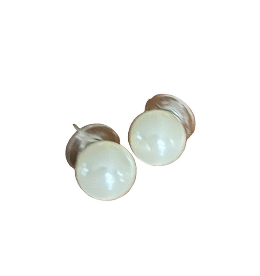 Faux Pearl Stud Post Pierced Earrings White 14mm