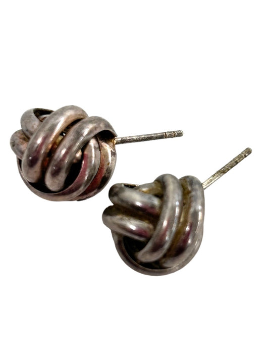 Silvertone Knot Pierced Post Earrings 5/8" Diameter Missing Back