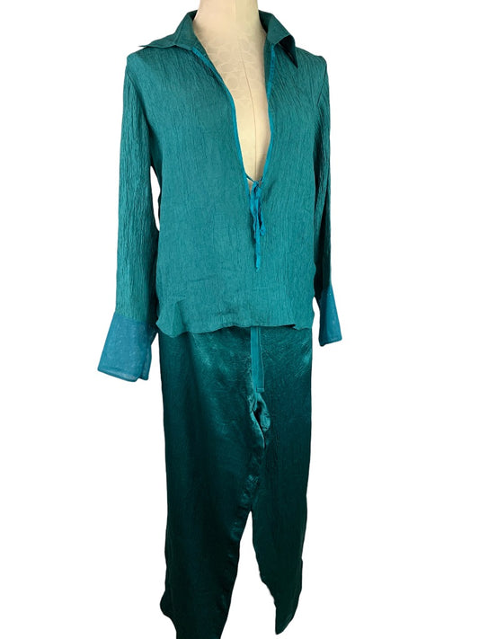 Medium DKNY Women's Emerald Green 2 Piece Loungewear Pajamas Silky Crepe