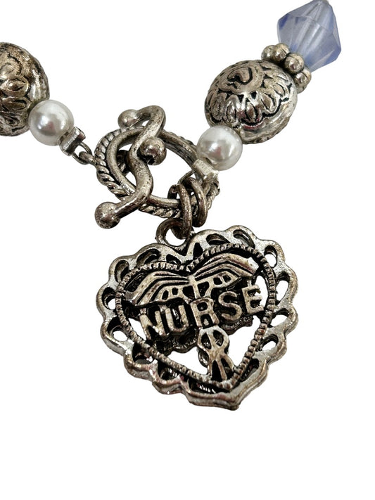 Nurse Silvertone Beaded 7.5" Bracelet Toggle Clasp Kindness Comfort