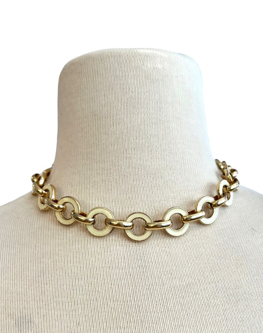 Anne Klein Circle Link Goldtone Necklace Cream Enamel Accents 17" + 2.75"