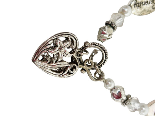 Silvertone Beaded Heart Charm Toggle Clasp 7.5" Bracelet Hope Serenity Peace